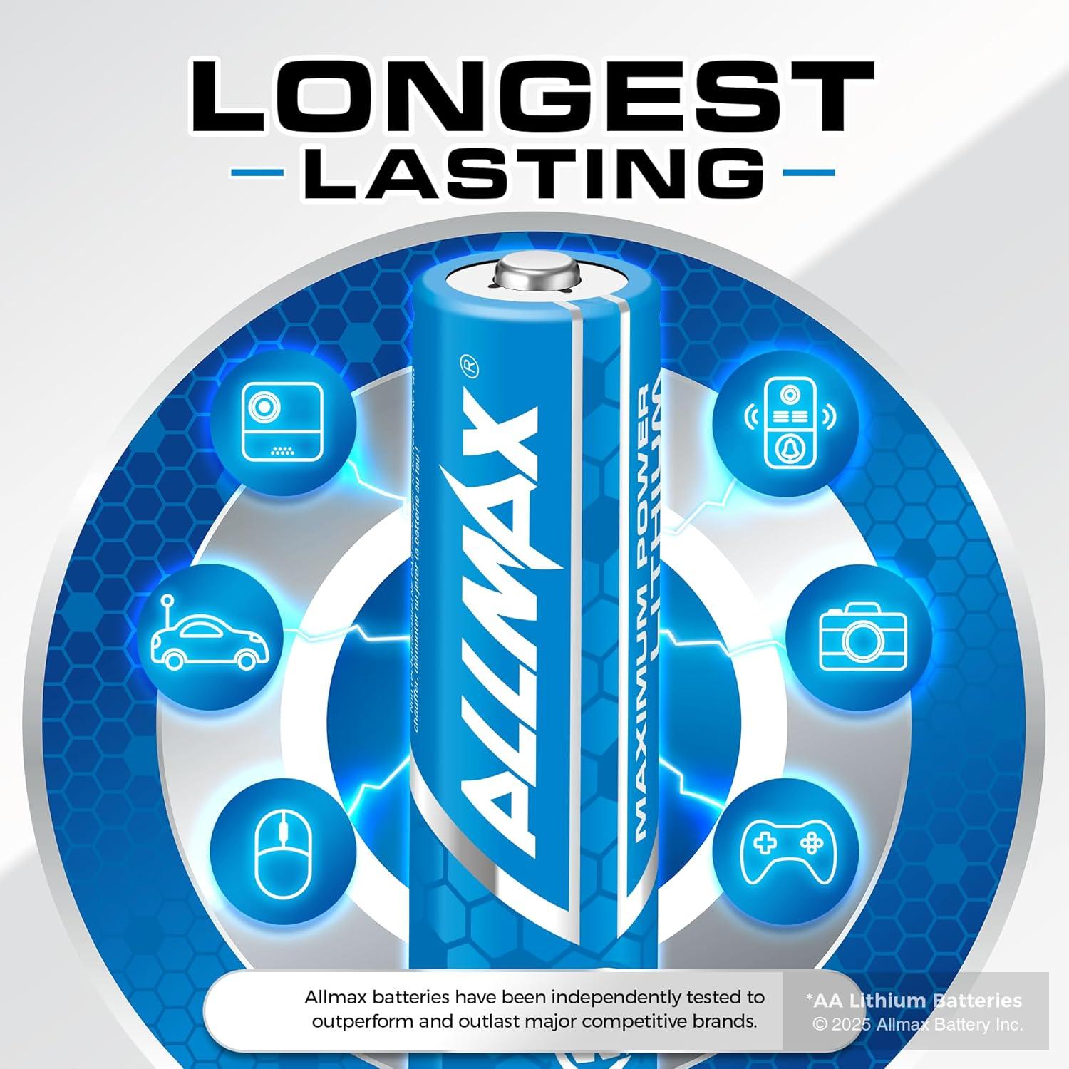 Allmax AA Maximum Power Lithium Batteries (16 Count) – Longest Lasting, Leakproof, 20-Year Shelf Life, Ultimate Performance, Perfect for Blink Security Cameras (1.5V)(16 Count (Pack of 1))