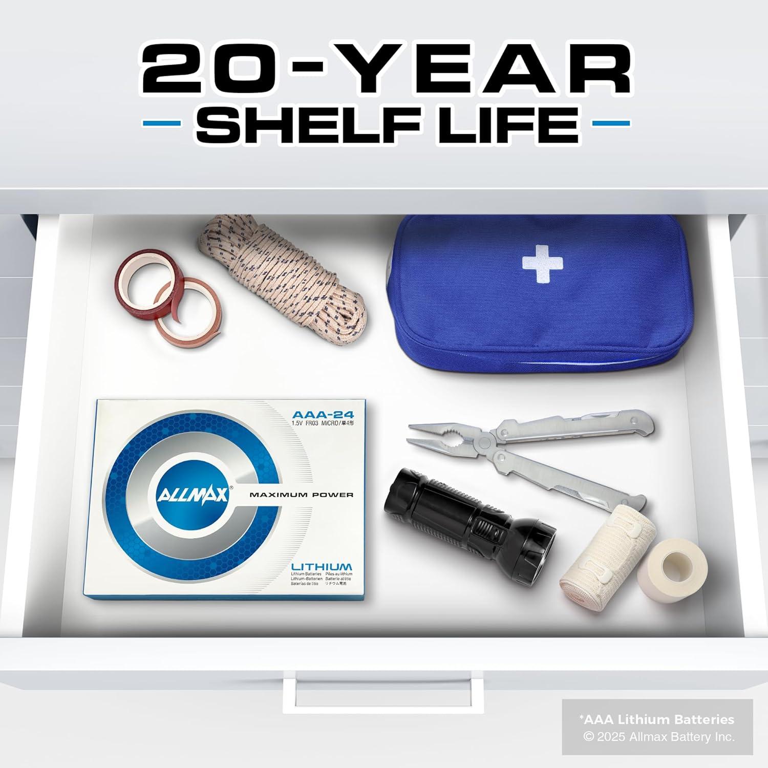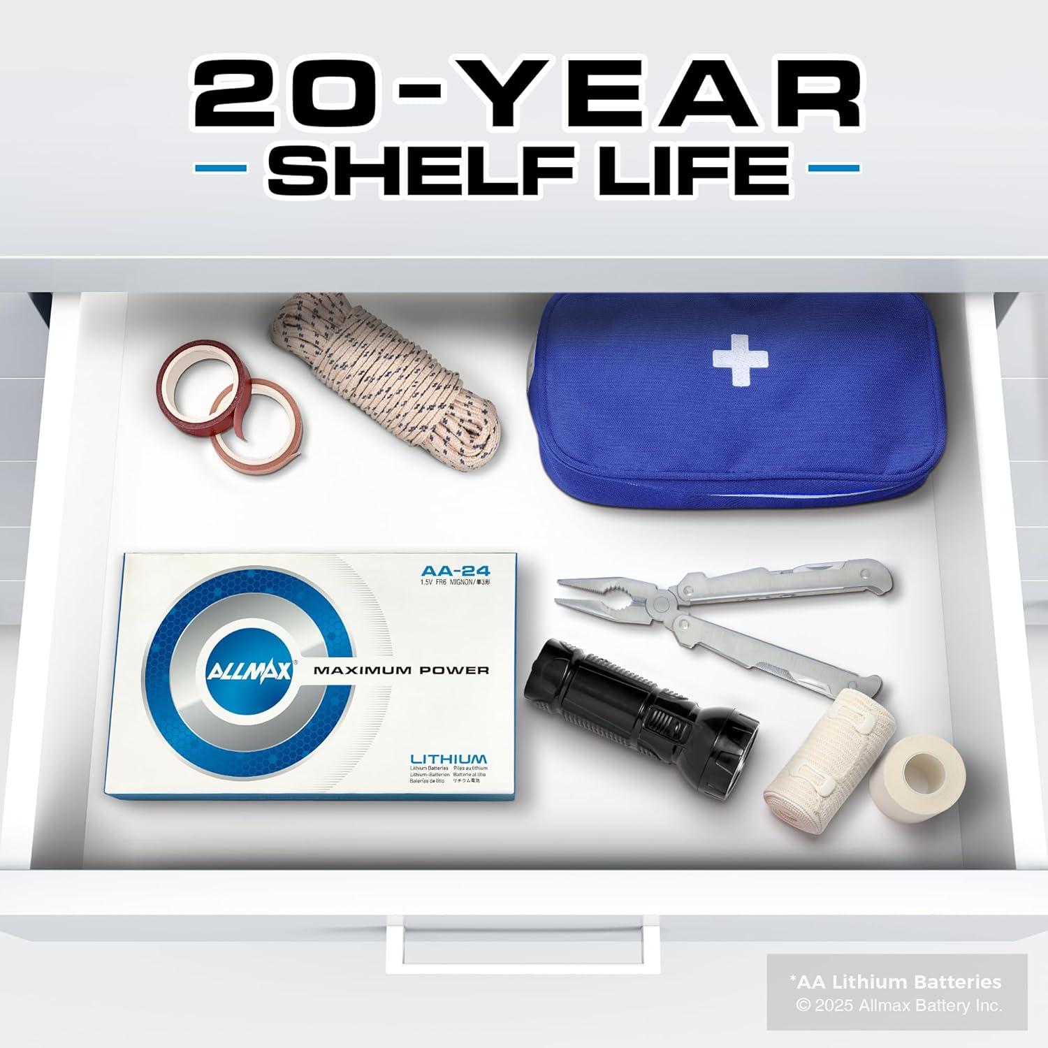 ★ 20-Year Shelf Life – Allmax AA Lithium Batteries are always fresh and maintain power for up to 20 years in proper storage. This makes Allmax batteries the perfect choice for long-term storage and emergency preparedness kits.