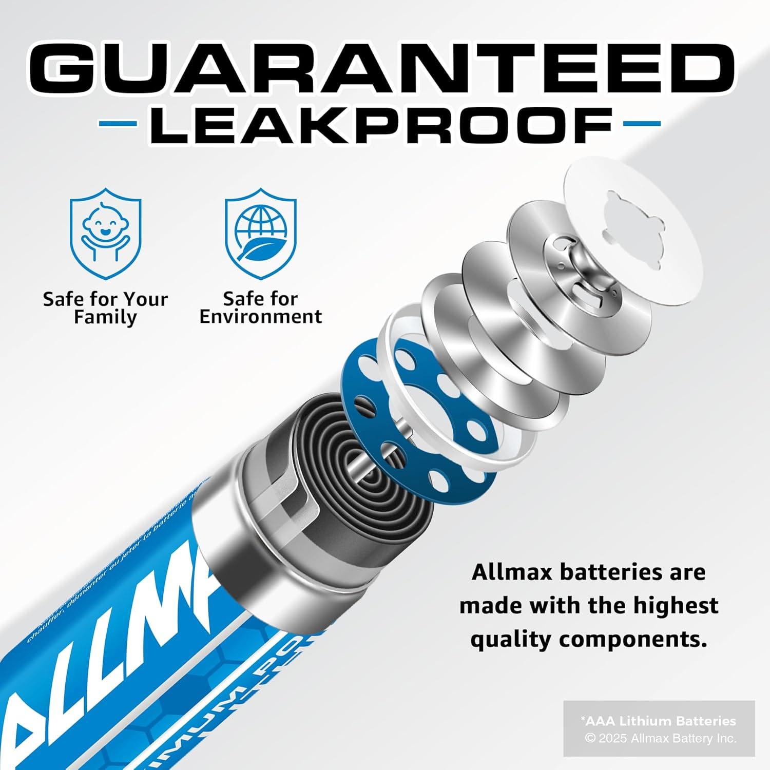 ★ Guaranteed Leakproof – Allmax AA Lithium batteries use EnergyCircle Technology to ensure a secure seal and prevent electrolyte leakage, resulting in unparalleled reliability and guaranteed leakproof performance. This makes Allmax batteries ideal for both everyday household and business applications.